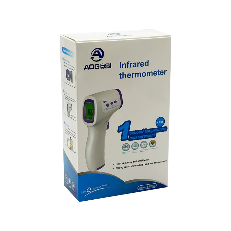 تب سنج AOGESI به صورت مادون قرمز و بدون تماس با بدن دما را اندازه گیری می نماید که با توجه به شیوع کرونا و بیماری های ویروسی این قابلیت بسیار مهم است تا دستگاه به ویروس آلوده نشود. طریقه استفاده از این دستگاه بسیار آسان و راحت می باشد، داخل دستگاه 2 عدد باتری نیم قلم قرار دهید و دستگاه را با فاصله 1 الی 3 سانتیمتر از پیشانی قرار داده و با فشردن یکبار دکمه، ترمومتر ظرف 1 ثانیه نتیجه دما را به شما اعلام خواهد کرد.
