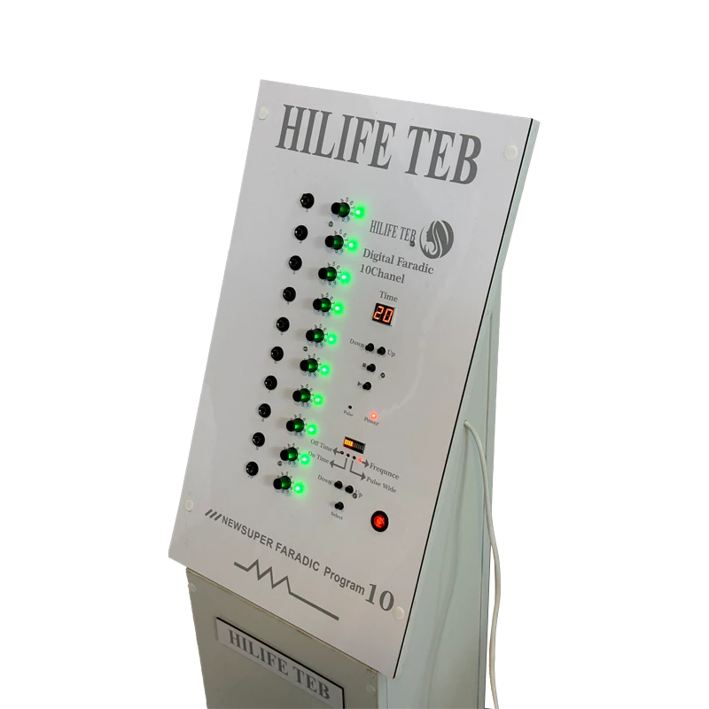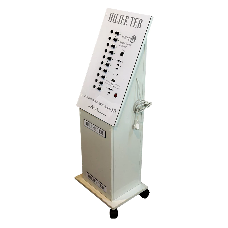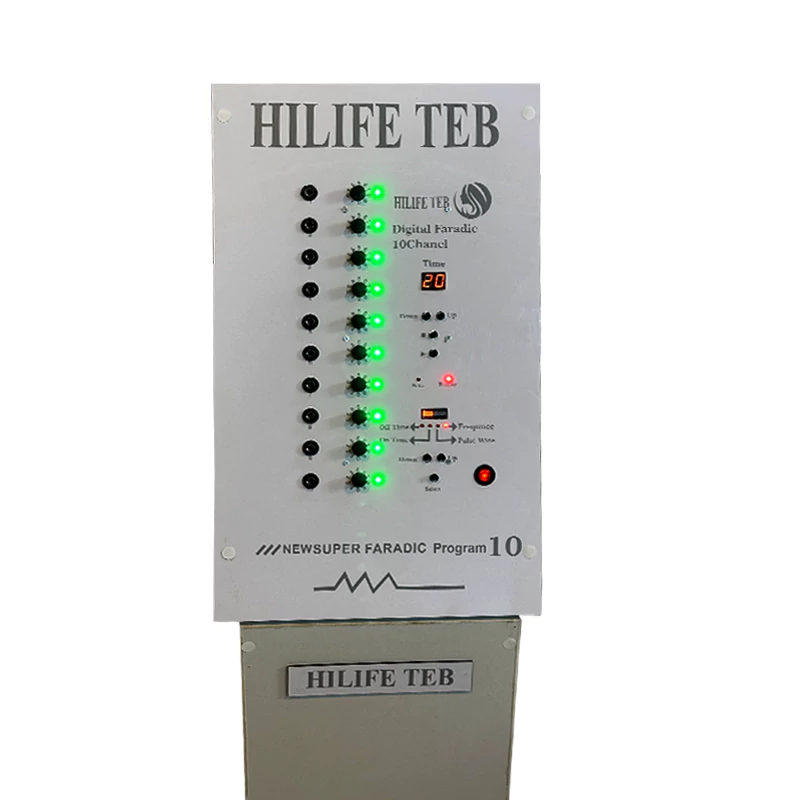 دستگاه فارادیک 10 کانال های لایف طب ساخت کشور ایران دارای قابلیت تنظیم فرکانس و پهنای پالس سیگنال خروجی و تولید سیگنال های قابل تنظیم و دارای ایمنی الکتریکی IEC-60601-1 و گواهینامه بین المللی تجهیزات پزشکی ISO 13485 می باشد.