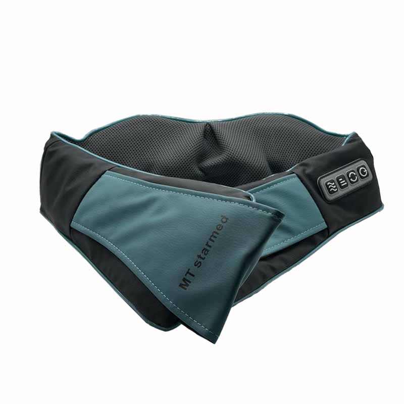 ماساژور گردن و شانه مدل MT starmed متناسب با آناتومی شانه و گردن طراحی شده است. شکل آن شبیه یک U بزرگ است (U-shaped) که دور گردن را گرفته و دو بازوی آن در جلو، روی سینه امتداد مییابد. در انتهای بازوها، قسمتی برای قرارگرفتن دستها و حتی امکان ایجاد فشار بیشتر تعبیه شده است. این ماساژور برقی داری 6 گوی ماساژ است که به صورت مالشی در دو جهت قابلیت ماساژ دارند.