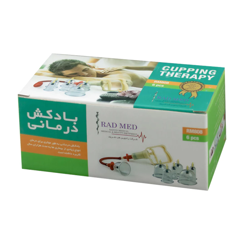 بادکش درمانی، ایجاد مکش در نقاط مختلف بدن به منظور انبساط عروقی بدن و انحراف مواد از نقطه خاص و همچنین رفع انسداد عروق و متمرکز شدن سموم است که در طب سنتی از آن به عنوان حجامت گرم و خشک یاد می شود. بادکش درمانی بسیاری از دردهای عضلانی قسمت های مختلف بدن نظیر کمر، پا و دستان را درمان می نماید. بادکش 12 لیوان رادمد مدل RM809 از گروه محصولات توانبخشی، ساخت ایران دارای 12 لیوان با سایز های مختلف برای تمامی قسمت های بدن قابل استفاده می باشد. همراه این محصول یک دسته وکیوم نیز موجود می باشد، برای کار با این بادکش طبی کافی است که هر کدام از لیوان ها را به دسته وکیوم متصل کنید و روی بدن قرار دهید. با کشیدن دسته وکیوم بادکشی انجام می شود و می توانید دسته را جدا نمایید.