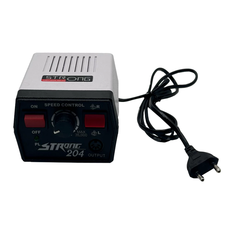 دستگاه سوهان برقی یکی از ابزار های مهم و اصلی برای کاشت ناخن است، این دستگاه برای سوهان کشیدن و صاف کردن تمام ناهمواری های سطح رویی ناخن استفاده می شود. سوهان برقی استرانگ مدل 204 یکی از پر فروشترین دستگاههای سوهان برقی نزد ناخن کارها می باشد که دارای یکی از بهترین و قدرتمندترین موتورهای سوهان برقی است. دسته اصلی سوهان برقی Strong 210 از دور موتور 35000 دور بهره میبرد که به هنگام کار با دور موتور 35000 متوجه لرزش و صدای بسیار کم آن میشوید.