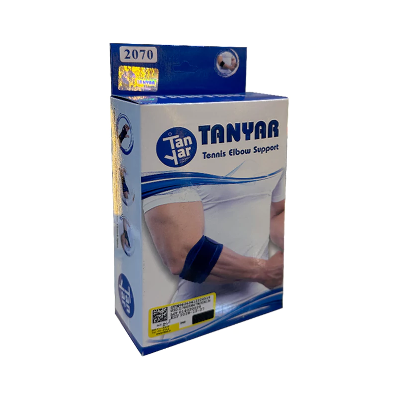 باند تنیس به وسیله بند چسبی قابل تنظیم، فشار موضعی بر ناحیه ساعد وارد کرده و موجب تسکین درد در ناحیه آرنج، انگشتان و ناحیه مچ دست می شود. باند تنیس البو نئوپرن تن یار کد 2070 یکی از محصولات گروه محصولات طبی می باشد. که در بهبود مواردی چون کشیدگی و درد عضلات ساعد و عضلات گرداننده مچ کاربرد دارد.