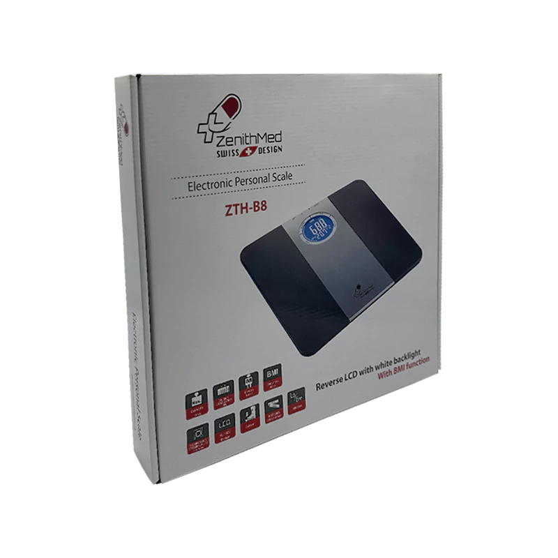 ترازو دیجیتال زنیت مد مدل ZTH-B8 با ابعاد و وزن استاندارد و سنجش پارامترهای جذاب نظیر چربی اضافه، آب میان بافتی، تراکم استخوانی و عضله بدن ترازویی جذاب برای استفاده در منزل برای ورزشکاران و کسانی که به وزن و تناسب خود اهمیت می دهند می باشد.