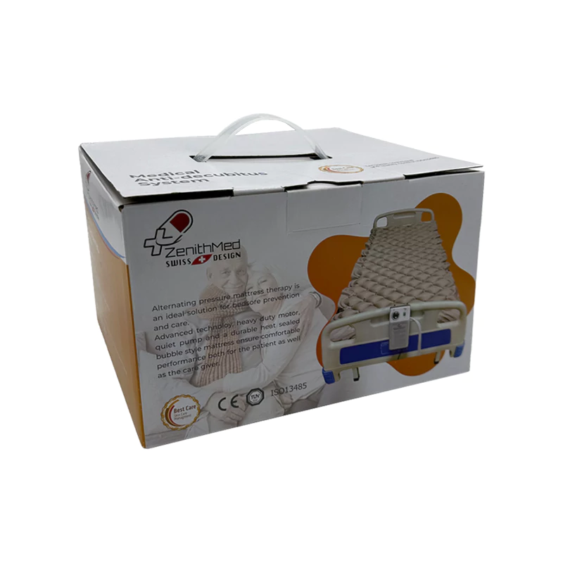 تشک مواج تخم مرغی مارک زنیت مد ساخت سوییس مناسب برای شبیه سازی تحرک بدن برای جلوگیری از ایجاد زخم بستر و یا درمان آن می باشد. این محصول برای بیماران تا وزن 120 کیلوگرم مناسب می باشد و مخصوص یک نفر می باشد. تشک این دستگاه از جنس PVC پزشکی ضد حساسیت ساخته شده است. خروجی هوا زنیت مد 8-7 لیتر در دقیقه می باشد.