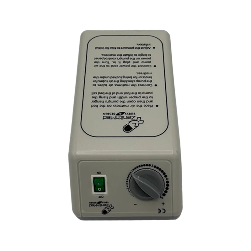 جنس تشک دستگاه زنیت مد از PVC پزشکی ضد حساسیت و آلرژی می باشد که باعث ایجاد خارش و قرمزی بر روی پوست نمی شود. بر روی موتور پمپ هوا این محصول یک دکمه برای تنظیم میزان هوای خروجی تعبیه شده که به صورت ولومی از 1 تا 5 متغیر می باشد، همچنین در پشت این موتور 2 عدد میله برای آویزان کردن موتور بر روی تخت بیمار یا هر جای دیگه ای ایجاد شده.